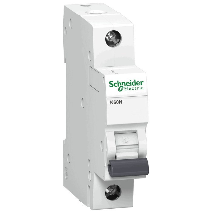 Автоматичен предпазител Schneider A9K01125 с номинално напрежение 230/400VAC, номинален ток 25A и изключвателна възможност 6kA. Вид крива B и монтаж за DIN шина.