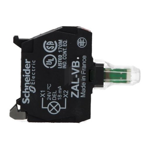 Бяла индикаторна LED лампа Schneider electric ZALVB1 с номинално напрежение 24VAC/DC, материал на корпуса пластмаса и монтажен отвор ф22мм. Подходяща за панелни превключватели XB5, ZB4 и ZB5.