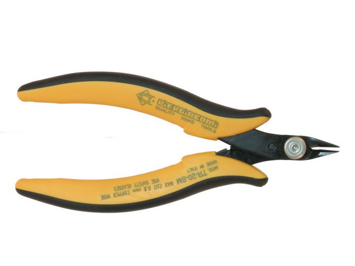 Клещи резачки TR 20SM PIERGIACOMI за странично рязане, мека тел макс. ф0.8мм и материал на инструмента стомана. Дължина на инструмента 140мм.