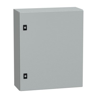 Кутия за табло NSYCRN65200P с монтажна плоча, материал на корпуса стомана и габаритни размери 500x600x200мм. Степен на защита IP66, цвят сив и устойчивост на механични удари IK10.