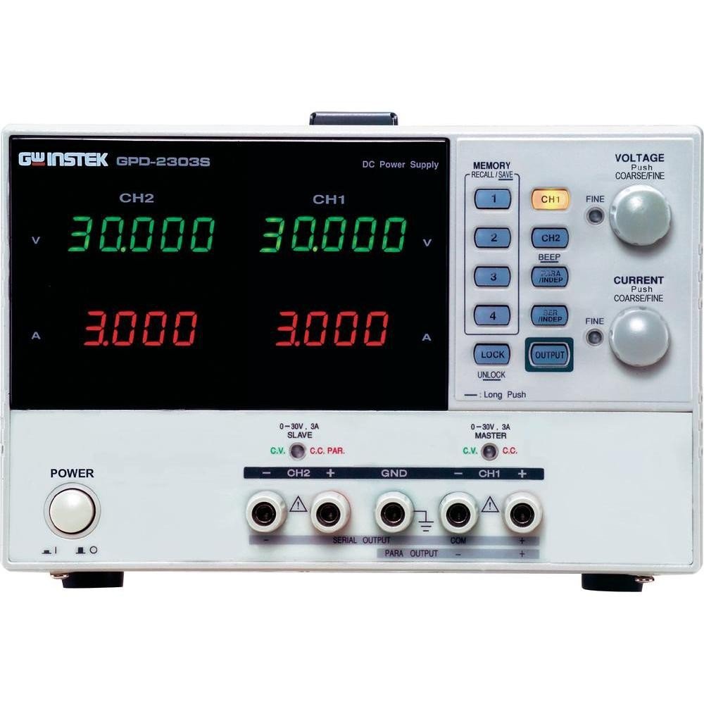 Регулируем захранващ блок GPD-2303S 30V 3A със захранващо напрежение 115/230VAC, макс. товар на изхода 30VDC/3A и макс. мощност 180W. Толеранс ±0.5% и защита от късо.