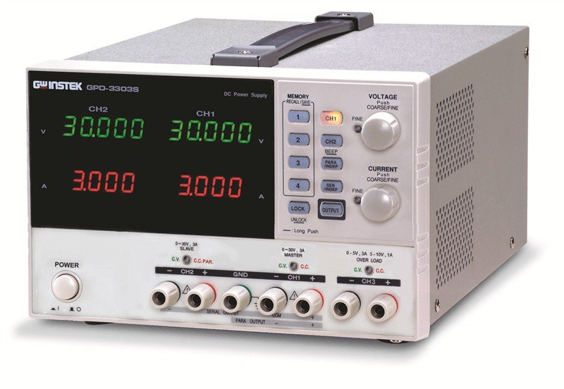 Регулируем захранващ блок GPD-3303S 30V 3A със захранващо напрежение 115/230VAC, макс. товар на изхода 30VDC/3A и макс. мощност 195W. Толеранс ±0.5% и защита от късо.