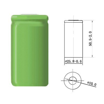 Акумулаторна батерия C 1.2V 3000mAh Ni-MH с изходно напрежение 1.2VDC, капацитет на батерия 3000mAh и размери 25.8х50.5мм.