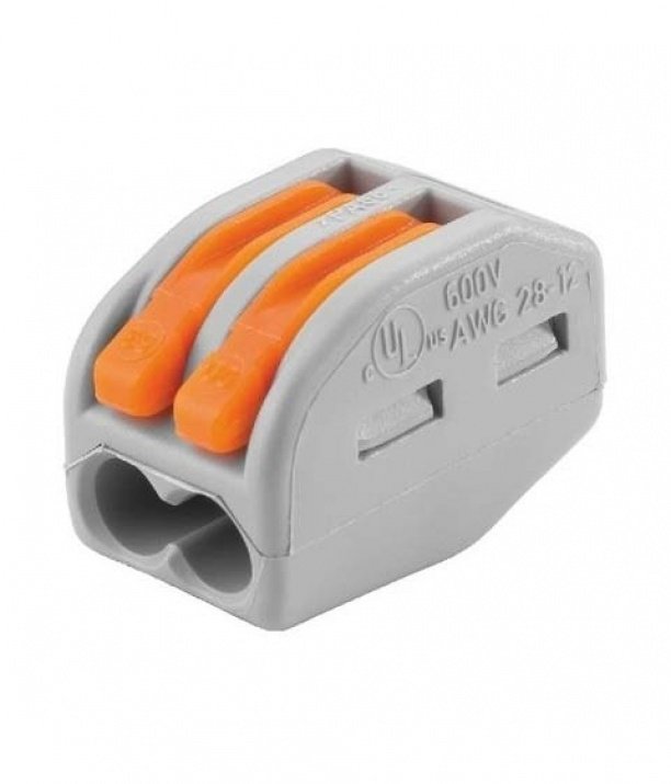 Безвинтова клема /бърза връзка/ WAGO 222-412 с номинално напрежение 400V, номинален ток 32А и максимално сечение на проводника 2.5мм2. Габаритни размери 20.5×14.5×12.4мм.