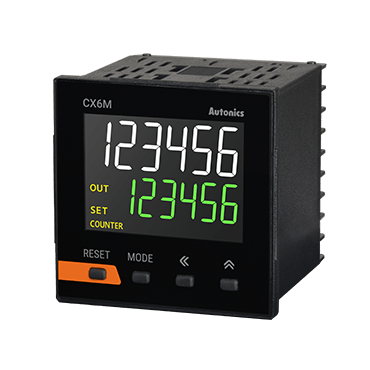 Брояч на импулси/време CX6M-2P4 със захранващо напрежение 100-240VAC, товароносимост на контактите 250VAC/3A; 30VDC/3A и обхват -99999 до 999999 импулса.