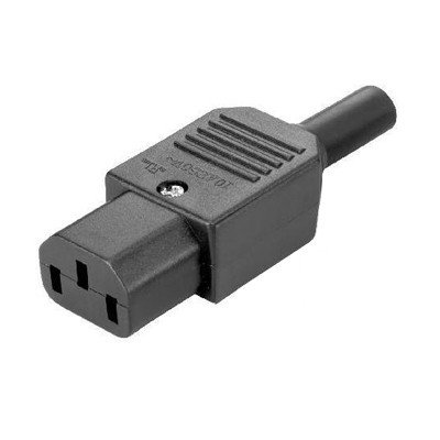 Захранваща букса AC C13 женска за кабел с метод на връзка запояване и материал на корпусa PBT (UL 94V-0).