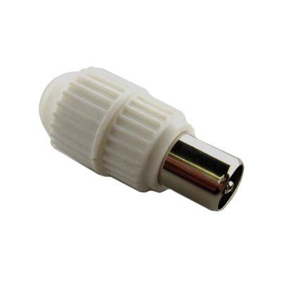 Букса PAL /001/ мъжка бяла с метод на връзка винт, тип кабел RG-59/RG-6U и монтаж кабел. Материал на корпуса PVC.