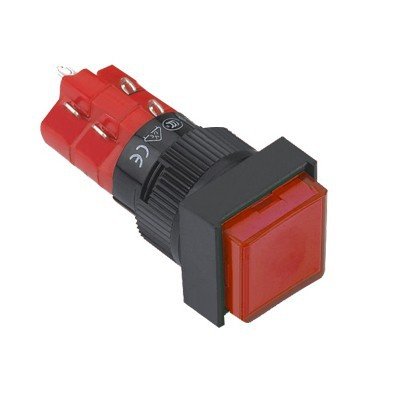 Бутон незадържащ LAS1F-22/R/250 червен с макс. напрежение 250VAC/24VDC, макс. ток 5A/2A и монтаж панел. Размери 18х18мм, монтажен отвор 16мм.