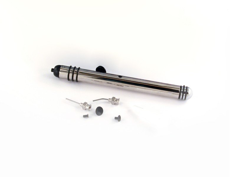 - Стандартно оборудване: гумени накрайници ф4мм, ф6мм и извита и права метална игла
