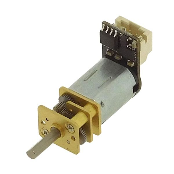 Двигател DC DFR0399 DFROBOT със захранващо напрежение 3.5-8VDC, работен ток 40mA и предавка 75:1. Интерфейс PWM и повърхност на оста нарез D.
