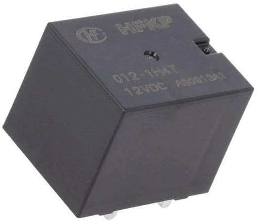 Електромагнитно реле HFKP/012-1H4T с напрежение на бобината 12VDC, напрежение на контактите 12VDC и ток на контактите 45A. Контакти NO, конфигурация на контактите SPST и габаритни размери 22×26.5×22.3мм.