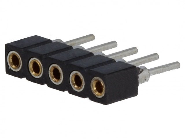 Цангова женска рейка права DS1002-01-1*4V13-JK CONNFLY с 4 пина и растер 2.54мм. За монтаж на печатна платка THT.