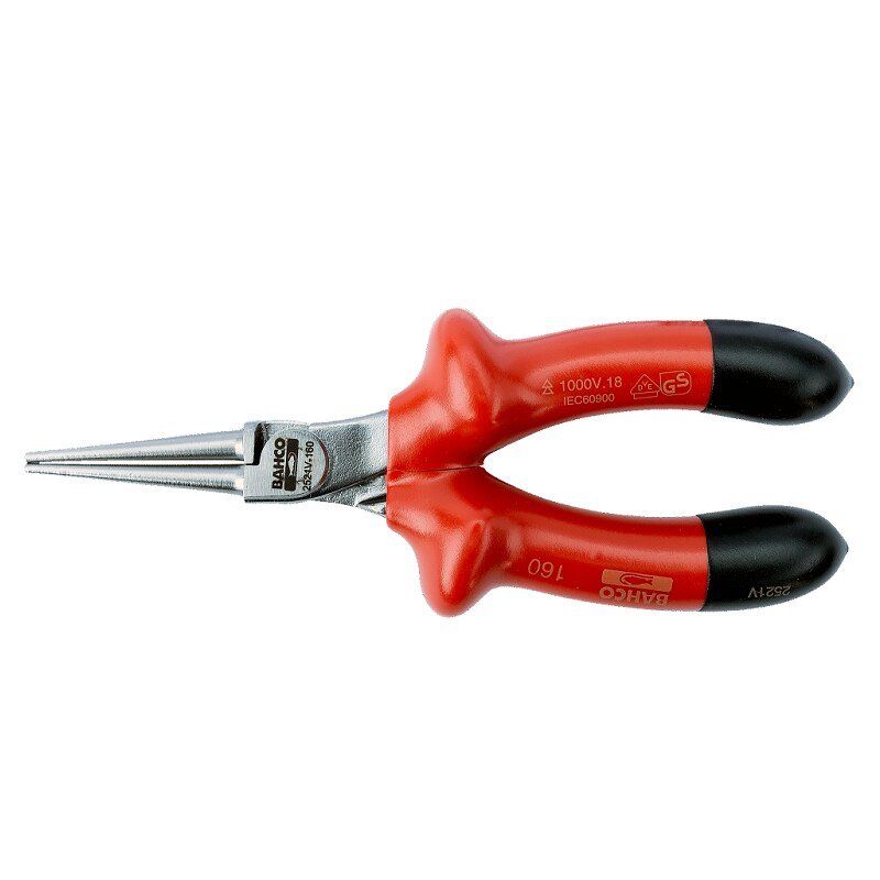 Изолирани клещи кръгли 2521V-160 BAHCO, материал на инструмента стомана. Дължина на инструмента 160мм и съответствие VDE.