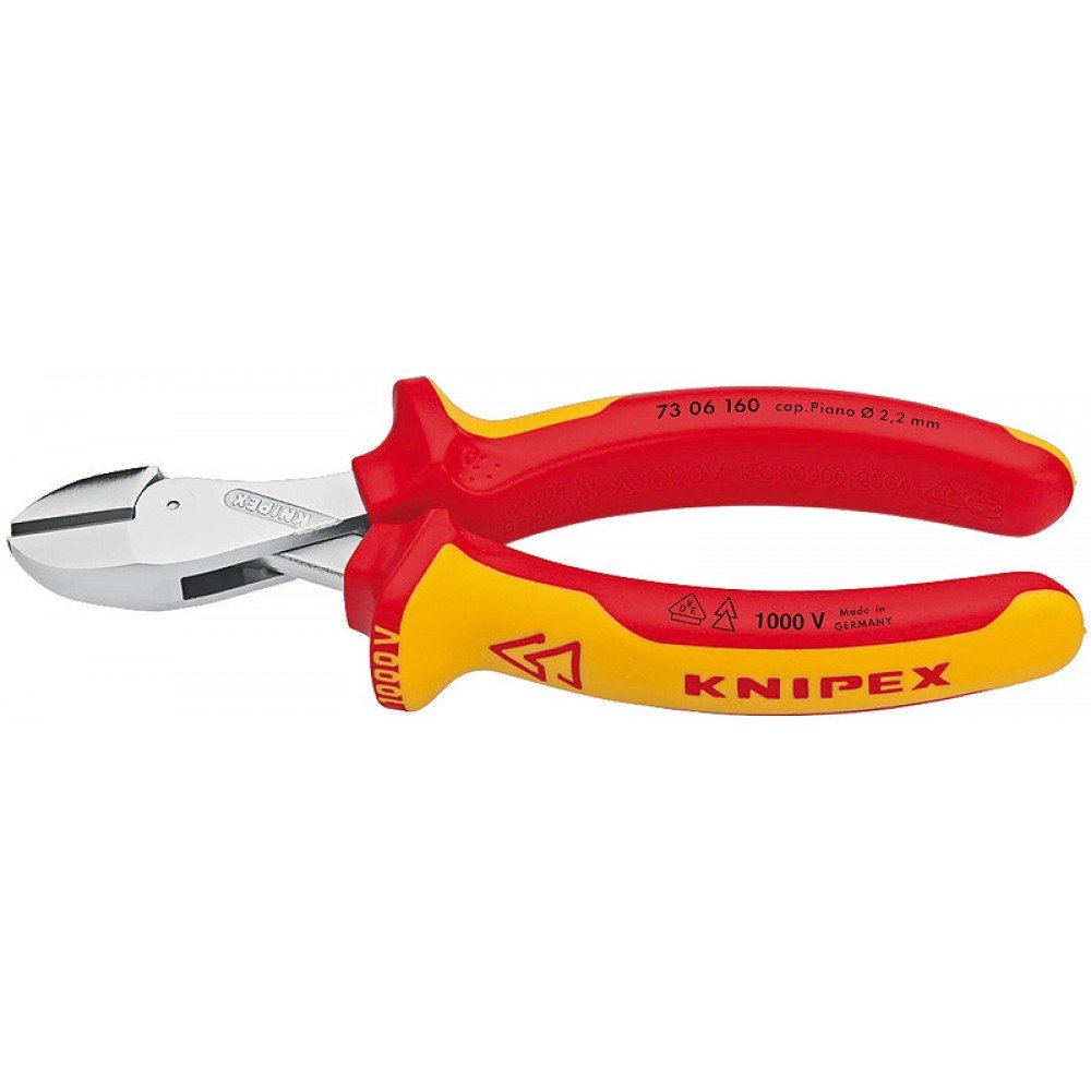 Изолирани клещи резачки 7306160 KNIPEX, материал на инструмента стомана. Дължина на инструмента 160мм и съответствие VDE.