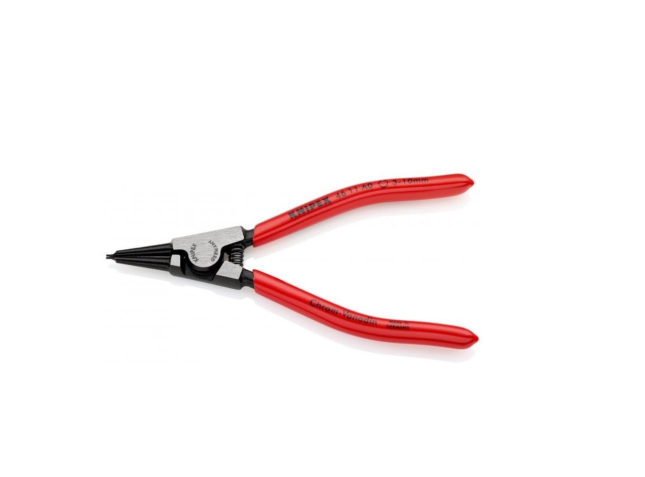 Клещи зегер 4611A0 KNIPEX за външни осигурителни пръстени с диаметър 3-10мм. Дължина на инструмента 140мм.
