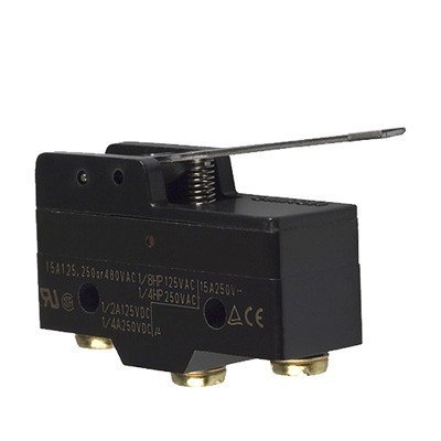 Краен прекъсвач с лост 64мм, максимално напрежение 250VAC и максимален ток 15A. Конфигурация на контакти SPDT и позиции на превключване (ON)-ON.