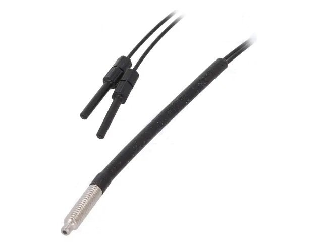 Оптичен датчик FS-01D-100 отражателен; фибро оптичен с размери на корпуса М4×17мм, свързване с оптично влакно 2x ф1мм и дължина на оптичното влакно 500мм.