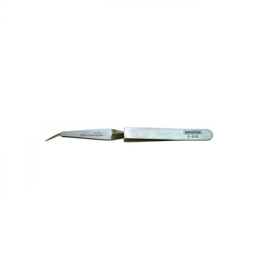 Пинсета BERNSTEIN 5-058 с форма на острието извита, форма на върха на острието заострен и дължина 120мм. Материал неръждаема стомана.