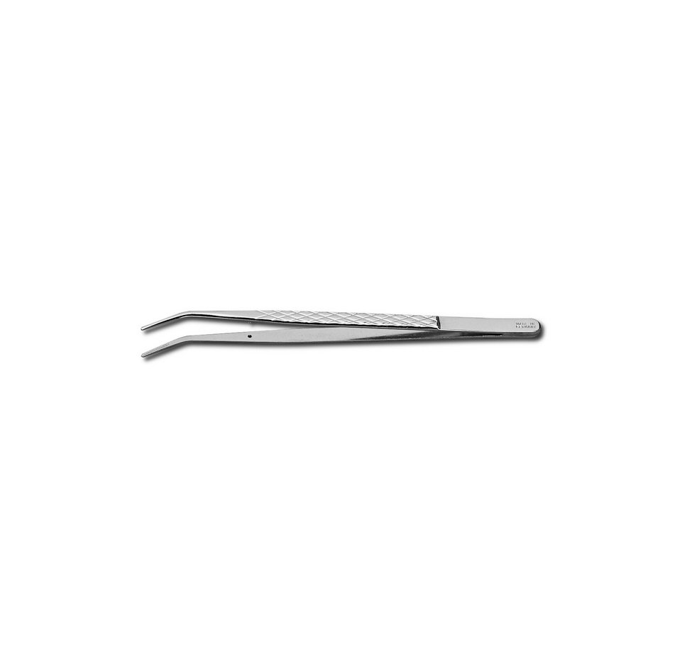 Пинсета PZ8 DONAU с форма на острието извита; удължена, широчина на върха 1.2мм и дължина 160мм. Материал никелирана стомана.