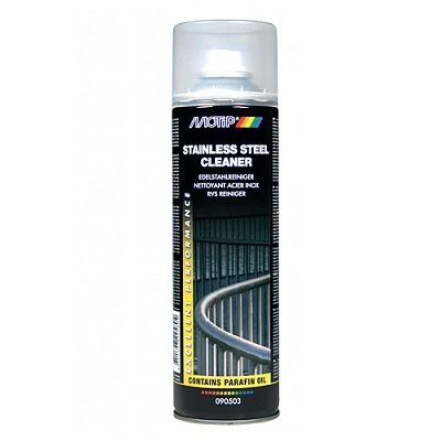 Почистващ спрей MOTIP 500ml за почистване на повърхности от неръждаема стомана. Осигурява антикорозионна защита.