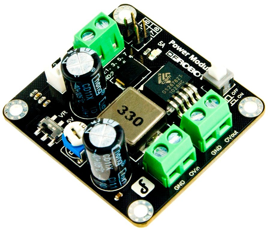Преобразувател step down с входно напрежение от 3.6 до 25V, изходно напрежение 3.3-25V и изходен ток 5A. Размери на платката 46×50мм.