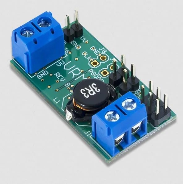 Преобразувател step down с входно напрежение от 5 до 15V, изходно напрежение 3.3-5V и изходен ток 6A. Интегрална схема TPS54620 и размери на платката 50.8×25.5мм.