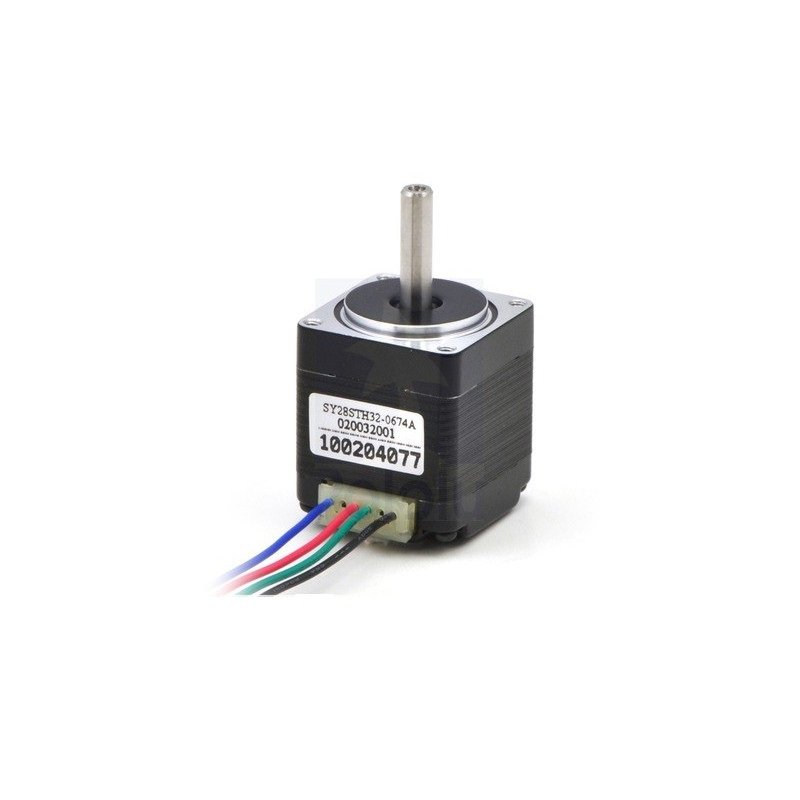 Стъпков двигател POLOLU-1205 със захранващо напрежение 3.8VDC, работен ток макс. 670mA и диаметър на вала 5мм. Свойства стъпка 1.8°.