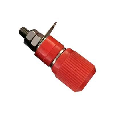 Съединител банан женски панелен 16мм червен с метод на връзка запояване и материал на корпусa PVC.