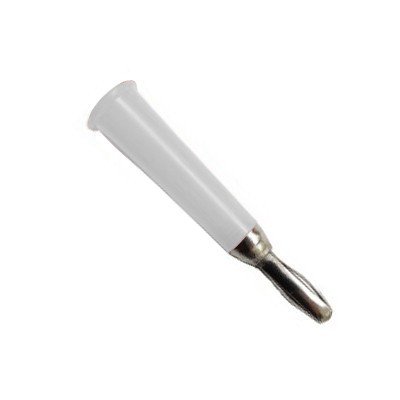 Съединител банан мъжки кабелен коничен бял с метод на връзка запояване и материал на корпусa PVC.