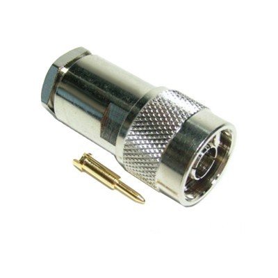 Съединител N мъжки кабелен RG-213 с метод на връзка притискане и материал на корпуса метал.