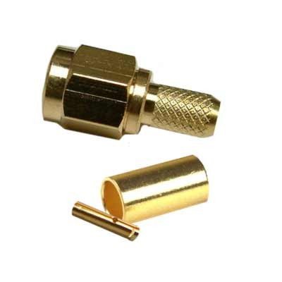 Съединител SMA мъжки обърнат RG-58 с метод на връзка кримпване и материал на корпуса метал.