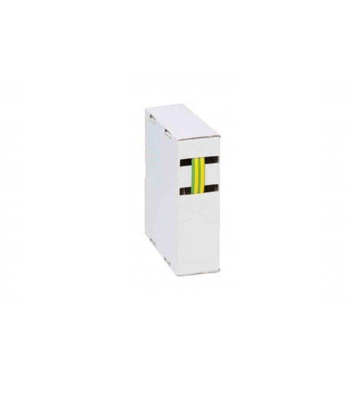 Термошлаух CB-HFT(2X)-12.7-BOX-YG ф12.7мм 15м жълто-зелен с диаметър D=12.7мм / d=6.35мм, дължина ролка 15 метра и съотношение на свиване 2:1. Материал полиолефин.