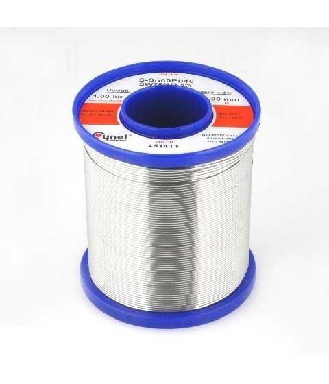 Тинол LC60-1.00/1.0 със съдържание на флюс 2.5%, състав на сплавта Sn60Pb40 и температура на топене 190°C. Диаметър 1мм и жила флюс 3.
