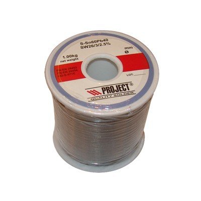 Тинол PROJECT Sn60Pb40 0.8мм 1кг със съдържание на флюс 0.5-3% и състав на сплавта Sn60Pb40. Диаметър 0.8мм и жила флюс 5.