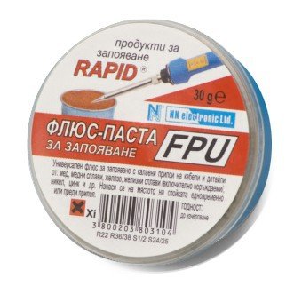 Флюс паста за запояване RAPID FPU 30гр за запояване с калаени припои на кабели и детайли от мед и медни сплави, желязо и железни сплави. Включително неръждаеми/ никел/ цинк и др.