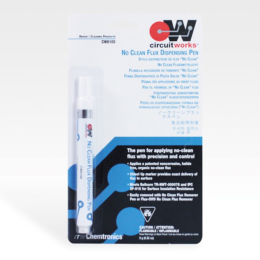 Флюс колофонов CW8100 CHEMTRONICS, вид No Clean; ROL0; безхалогенни; некорозионен и плътност 830mg/cm3 при 25°C. Обем 9мл.