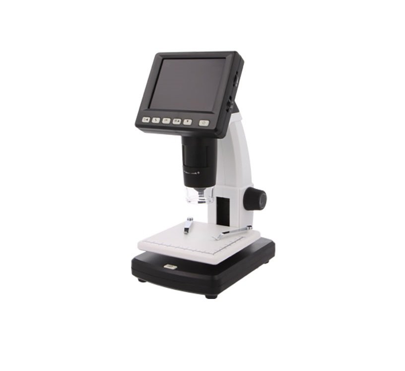 Цифров микроскоп NB-MIKR-500 със захранване 230VAC, дисплей 3.5″ TFT и увеличение от x10 до x500. Работна повърхност 80×90мм, сензор 5Mp и осветление LED /8 светодиода/.