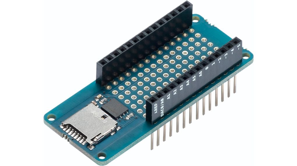 ARDUINO MKR MEM SHIELD със захранващо напрежение 3.3VDC, компоненти W25Q16 и интерфейс SPI. Контакти Arduino гнездо; Arduino щепсел; SD Micro.