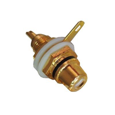 Конектор RCA женски панелен черен златист с метод на връзка запояване и материал на корпуса метал.