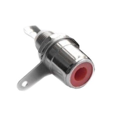Конектор RCA женски панелен червен с метод на връзка запояване и материал на корпуса метал.