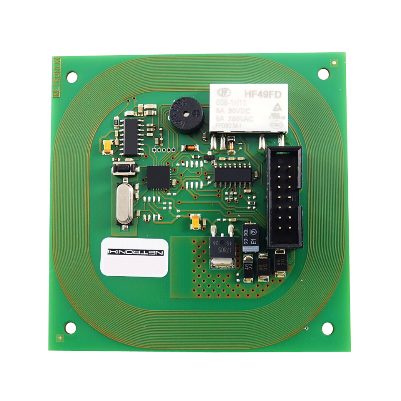 RFID четец CTU-D5R NETRONIX със захранващо напрежение 5V, честота 125kHz и вид транспондер HID/HITAG-1/HITAG-2/Hitag-S/Q5/Unique. Габаритни размери 79.5×79.5мм.